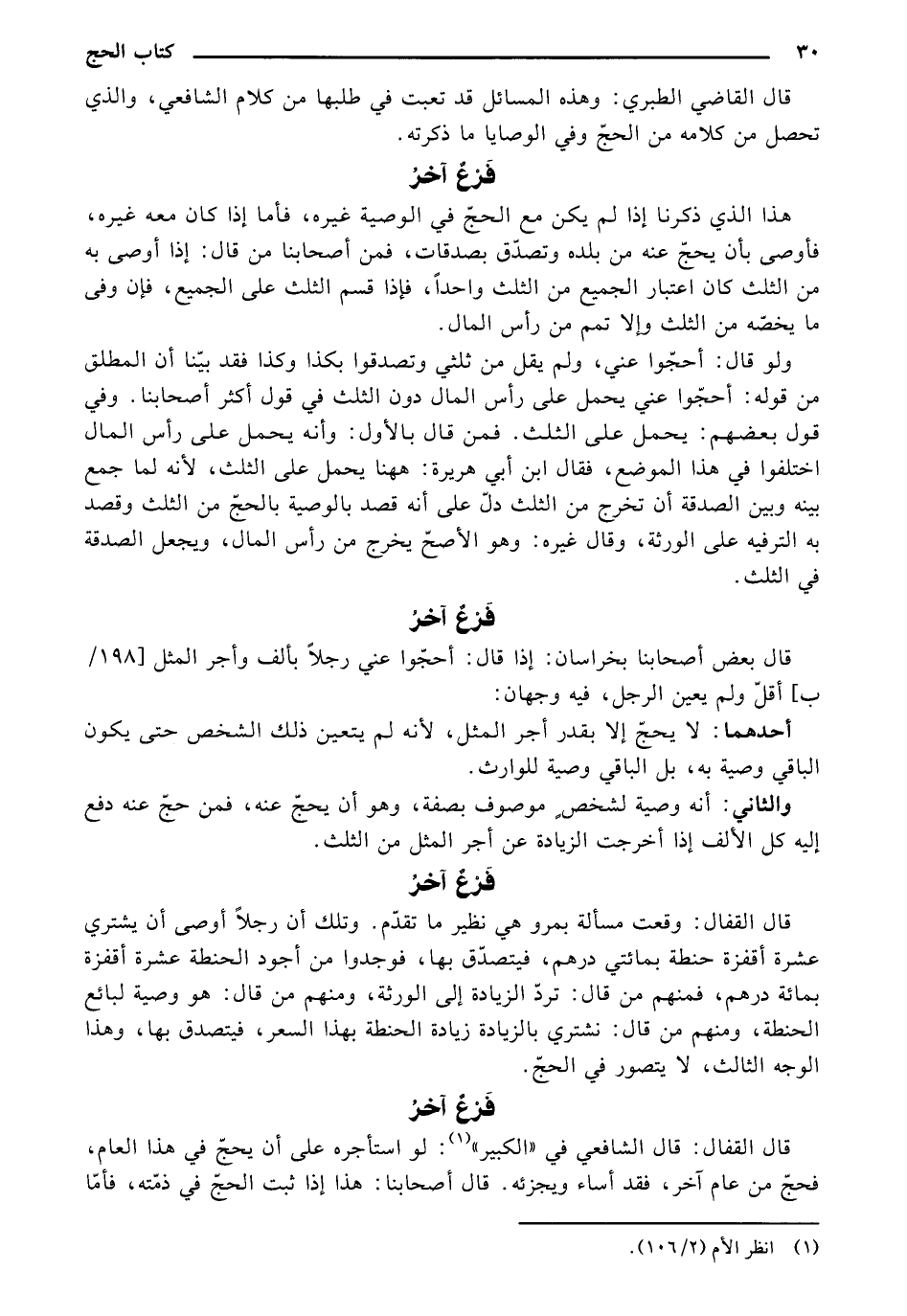 قال القاضي الطبري: وهذه المسائل قد تعبت في طلبها من كلام الشافعي، والذي تحصل من كلامه من الحج وفي الوصايا ما ذكرته.