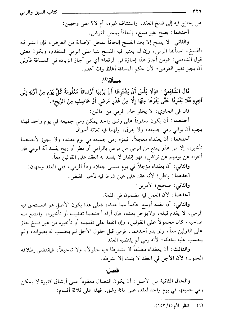 قال الشافعي: "ولا بأس أن يشترطا أن يرميا أرشاقاً معلومة كل يؤم من أوله إلى آخره فلا يفترقا حتى يفرغا منها إلا من عذر مرض أو عاصف من الريح ".