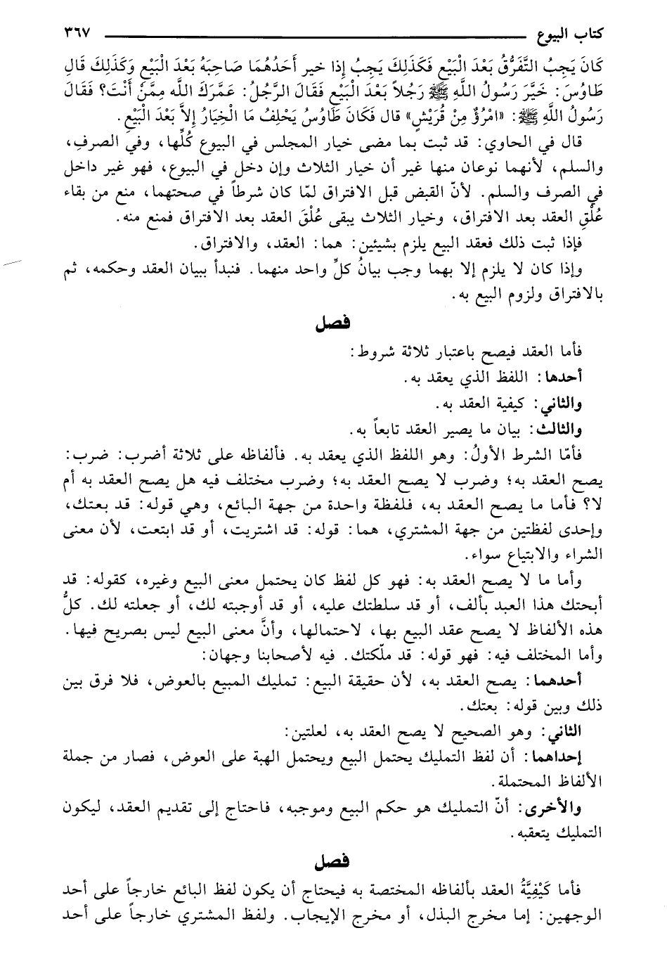 وإذا كان لا يلزم إلا بهما وجب بيان كل واحد منهما. فنبدأ ببيان العقد وحكمه، ثم بالافتراق ولزوم البيع به.