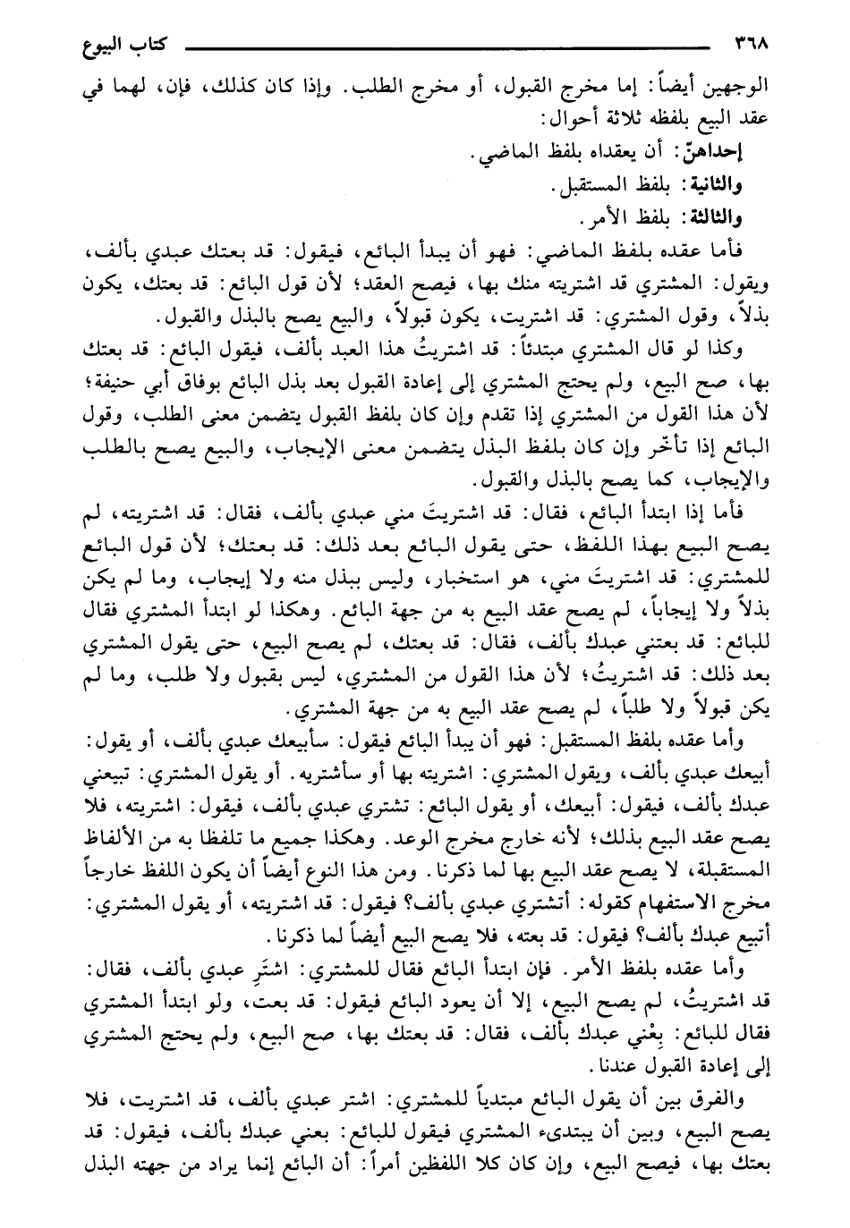 الوجهين أيضاً: إما مخرج القبول، أو مخرج الطلب. وإذا كان كذلك، فإن، لهما في عقد البيع بلفظه ثلاثة أحوال: