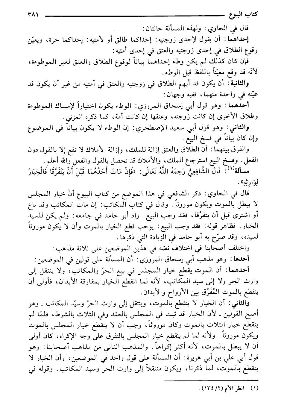 قال في الحاوي: ولهذه المسألة حالتان:
