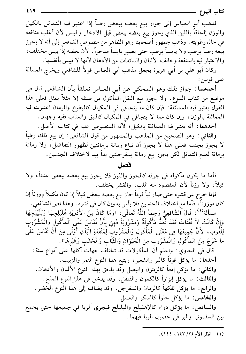 قال في الحاوي: واعلم أن المأكولات قد تختلف جهات أكلها على أنواع ستة: