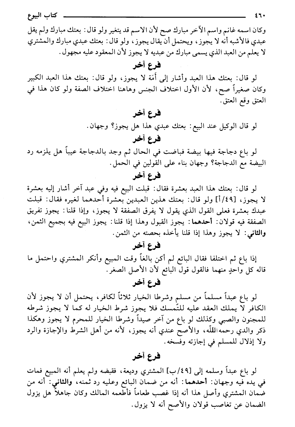 وكان اسمه غانم واسم الآخر مبارك صح لأن الاسم قد يتغير ولو قال: بعتك مبارك ولم يقل عبدي فالأشبه أنه لا يجوز، ويحتمل أن يقال يجوز، ولو قال: بعتك عبدي مبارك والمشتري لا يعلم من العبد الذي يسمى مبارك من عبديه لا يجوز لأن المعقود عليه مجهول.