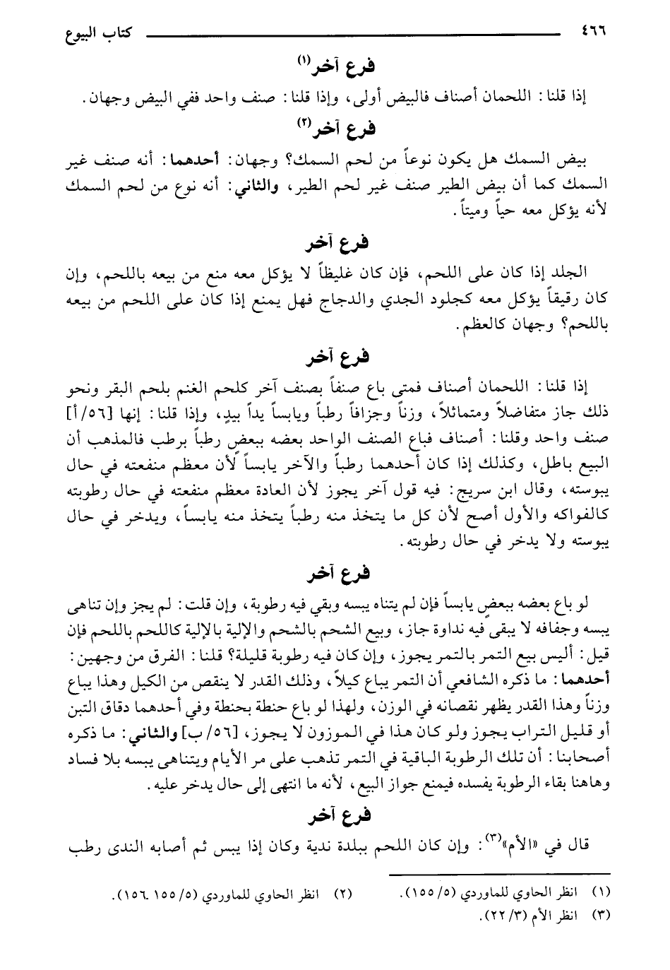 بيض السمك هل يكون نوعًا من لحم السمك؟ وجهان: أحدهما: أنه صنف غير السمك كما أن بيض الطير صنف غير لحم الطير، والثاني: أنه نوع من لحم السمك لأنه يؤكل, معه حيًا وميتًا.