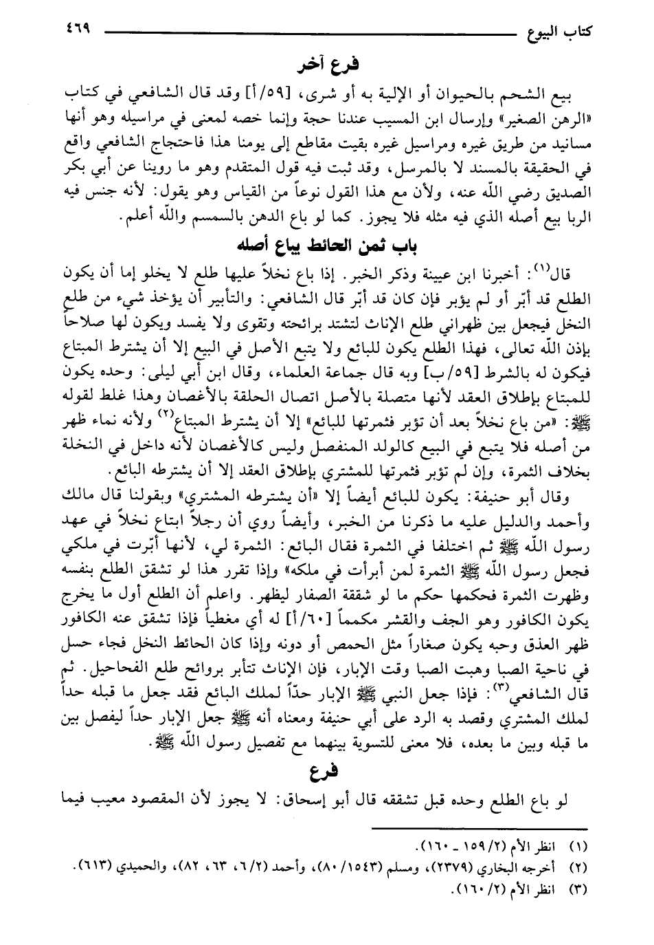 قال: أخبرنا ابن عيينة وذكر الخبر. إذا باع نخلًا عليها طلع لا يخلو إما أن يكون الطلع قد أّبر أو لم يؤبر فإن كان قد أّبر قال الشافعي: والتأبير أن يؤخذ شيء من طلع النخل فيجعل بين ظهراني طاع الإناث لتشتد برائحته وتقوى ولا يفسد ويكون لها صلاحًا بإذن الله تعالى، فهذا الطلع يكون للبائع ولا يتبع الأصل في البيع إلا أن يشترط المبتاع فيكون له بالشرط [59/ ب] وبه قال جماعة العلماء، وقال ابن أبي ليلى: وحده يكون للمبتاع بإطلاق العقد لأنها متصلة بالأصل اتصال الحلقة بالأغصان وهذا غلط لقوله - صلى الله عليه وسلم -: (من باع نخلًا بعد أن تؤبر فثمرتها للبائع) إلا أن يشترط المبتاع ولأنه نماء ظهر من أصله فلا يتبع في البيع كالولد المنفصل وليس كالأغصان لأنه داخل في النخلة بخلاف الثمرة، وإن لم تؤبر فثمرتها للمشتري بإطلاق العقد إلا أن يشترطه البائع.