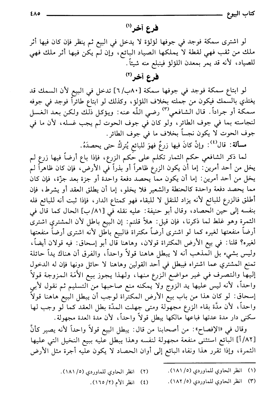 لو ابتاع سمكة فوجد في جوفها سمكة [80 ب/ 6] تدخل في البيع لأن السمك قد يغتذي بالسمك فيكون من جملته بخلاف اللؤلؤ، وكذلك لو ابتاع طائرًا فوجد في جوفه سمكة أو جرادًا. قال الشافعي، - رضي الله عنه -: ويؤكل ذلك ولكن بعد الغسل لنجاسته بما في جوف الطائر، ولو كان في جوف الحوت لم يجب غسله، لأن ما في جوف الحوت لا يكون نجسًا بخلاف ما في جوف الطائر.