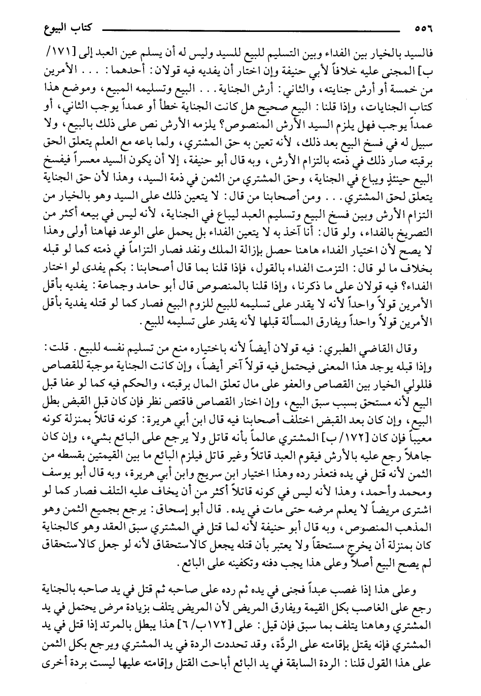فالسيد بالخيار بين الفداء وبين التسليم للبيع للسيد وليس له أن يسلم عين العبد إلى [171/ ب] المجني عليه خلافاً لأبي حنيفة وإن اختار أن يفديه فيه قولان: أحدهما: .... الأمرين من خمسة أو أرش جنايته، والثاني: أرش الجناية ... البيع وتسليمه المبيع، وموضع هذا كتاب الجنايات، وإذا قلنا: البيع صحيح هل كانت الجناية خطأ أو عمداً يوجب الثاني، أو عمداً يوجب فهل يلزم السيد الأرش المنصوص؟ يلزمه الأرش نص على ذلك بالبيع، ولا سبيل له في فسخ البيع بعد ذلك، لأنه تعين به حق المشتري، ولما باعه مع العلم يتعلق الحق برقبته صار ذلك في ذمته بالتزام الأرش، وبه قال أبو حنيفة، إلا أن يكون السيد معسراً فيفسخ البيع حينئذ ويباع في الجناية، وحق المشتري من الثمن في ذمة السيد، وهذا لأن حق الجناية يتعلق لحق المشتري ... ومن أصحابنا من قال: لا يتعين ذلك على السيد وهو بالخيار من التزام الأرش وبين فسخ البيع وتسليم العبد ليباع في الجناية، لأنه ليس في بيعه أكثر من التزام الأرش وبين فسخ البيع وتسليم العبد ليباع في الجناية، لأنه ليس في بيعه أكثر من التصريخ بالفداء، ولو قال: أنا آخذ به لا يتعين الفداء بل يحمل على الوعد فهاهنا أولى وهذا لا يصح لأن اختيار الفداء هاهنا حصل بإزالة الملك ونفد فصار التزاماً في ذمته كما لو قبله بخلاف ما لو قال: التزمت الفداء بالقول، فإذا قلنا بما قال أصحابنا: بكم يفدي لو اختار الفداء؟ فيه قولان على ما ذكرنا، وإذا قلنا بالمنصوص قال أبو حامد وجماعة: يفديه بأقل الأمرين قولاً واحداً لأنه لا يقدر على تسليمه للبيع للزوم البيع فصار كما لو قلته يفدية بأقل الأمرين قولاً واحداً ويفارق المسألة قبلها لأنه يقدر على تسليمه للبيع.