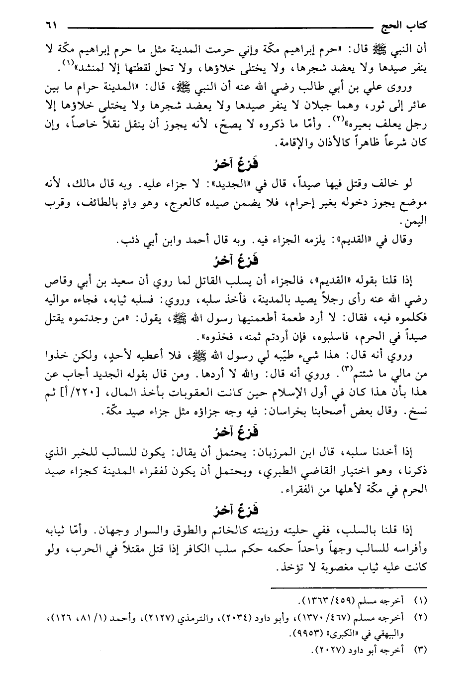 إذا قلنا بقوله "القديم "، فالجزاء أن يسلب القاتل لما روي أن سعيد بن أبي وقاص رضي الله عنه رأى رجلًا يصيد بالمدينة، فأخذ سلبه، وروي: فسلبه ثيابه، فجاءه مواليه فكلموه فيه، فقال: لا أرد طعمة أطعمنيها رسول الله - صلى الله عليه وسلم -، يقول: "من وجدتموه يقتل صيدًا في الحرم، فاسلبوه، فإن أردتم ثمنه، فخذوه".