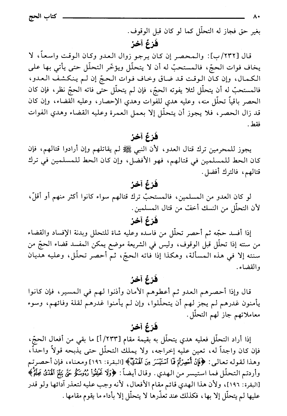 قال [232/ ب]: والمحصر إن كان يرجو زوال العدو وكان الوقت واسعًا، لا يخاف فوات الحج، فالمستحب له أن لا يتحلل ويؤخر التحلل حتى يأتي بها على الكمال، وإن كان الوقت قد ضاق وخاف فوات الحج وإن لم ينكشف العدو، فالمستحب له أن يتحلل لئلا يفوته الحج، فإن لم يتحلل حتى فاته الحج نظر، فإن كان الحصر باقيًا تحلل منه، وعليه هدي للفوات وهدي الإحصار، وعليه القضاء، وإن كان قد زال الحصر، فلا يجوز أن يتحلل إلا بعمل العمرة وعليه القضاء وهدي الفوات فقط.