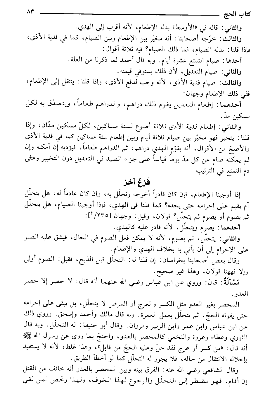 مَسْأَلٌة: قال: وروي عن ابن عباس رضي أنه عنهما أنه قال: لا حصر إلا حصر العدو.