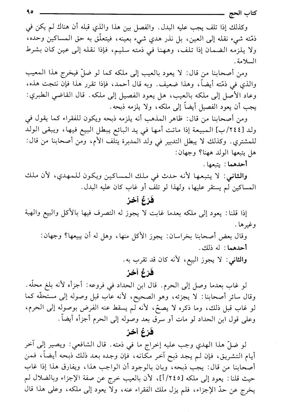 ومن أصحابنا من قال: ظاهر المذهب أنه يلزمه ذبحه ويكون للفقراء كما يقول في ولد [244/ب] المبيعة إذا ماتت أمها في يد البائع يبطل البيع فيها، ويبقى الولد للمشتري. وكذلك لا يبطل التدبير في ولد المدبرة يتلف الأم، ومن أصحابنا من قال هل يتبعها الولد ههنا؟ وجهان: