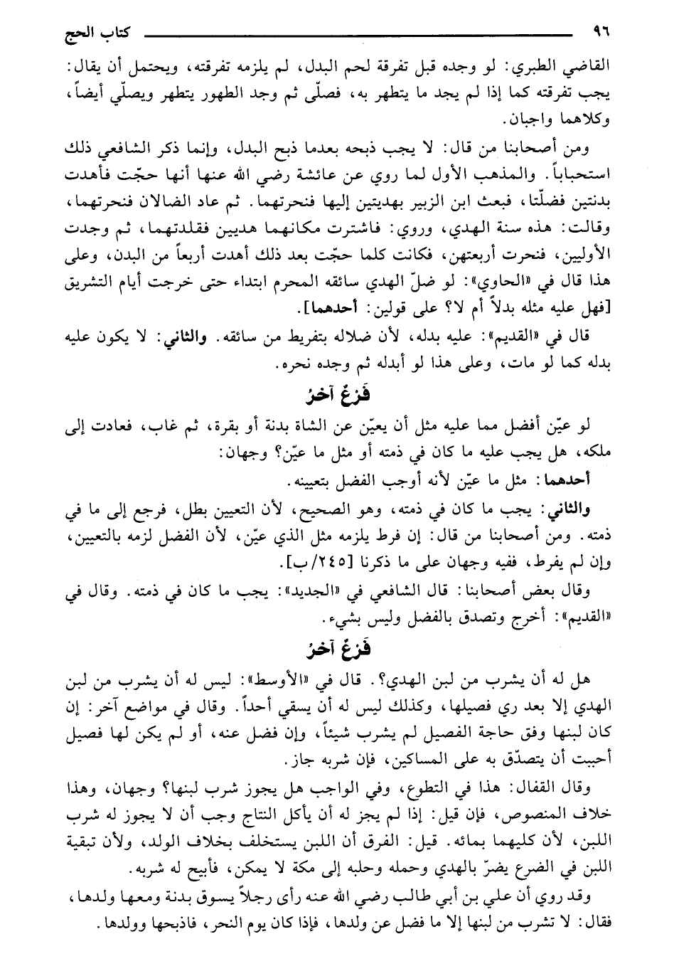 وقال القفال: هذا في التطوع، وفي الواجب هل يجوز شرب لبنها؟ وجهان، وهذا خلاف المنصوص، فإن قيل: إذا لم يجز له أن يأكل النتاج وجب أن لا يجوز له شرب اللبن، لأن كليهما بمائه. قيل: الفرق أن اللبن يتخلف بخلاف الولد، ولأن تبقية اللبن في الضرع يضر بالهدي وحمله وحلبه إلى مكة لا يمكن، فأبيح له شربه.