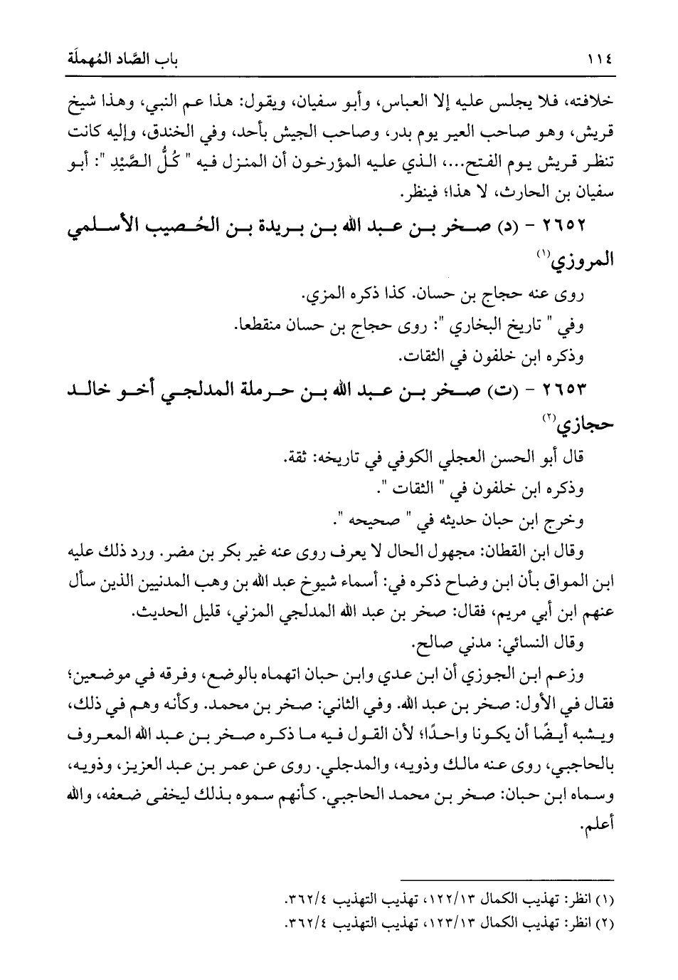 ٢٦٥٣ - (ت) صخر بن عبد اللَّه بن حرملة المدلجي أخو خالد حجازي (¬٢)