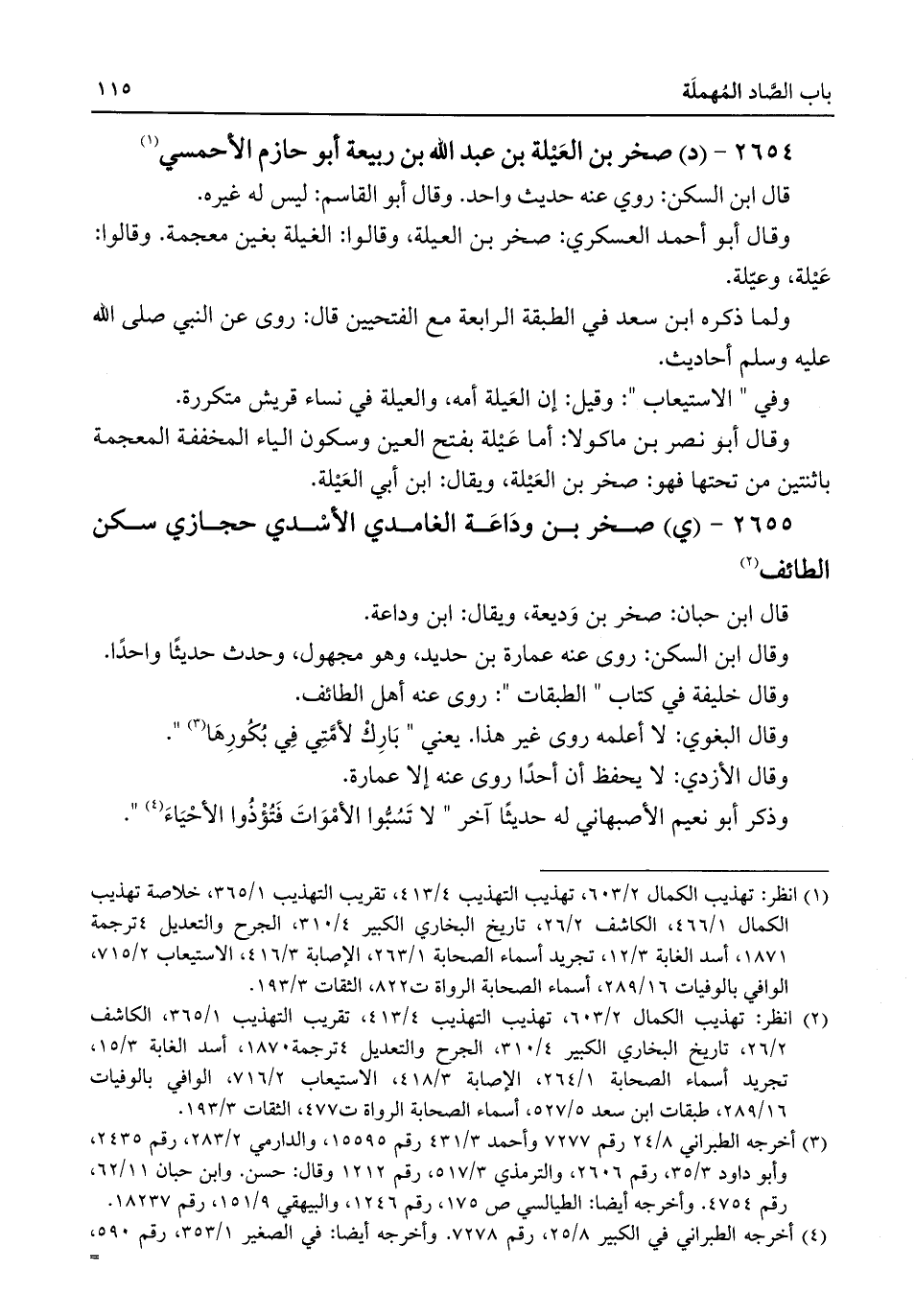 ٢٦٥٥ - (ي) صخر بن ودَاعَة الغامدي الأسْدي حجازي سكن الطائف (¬٢)