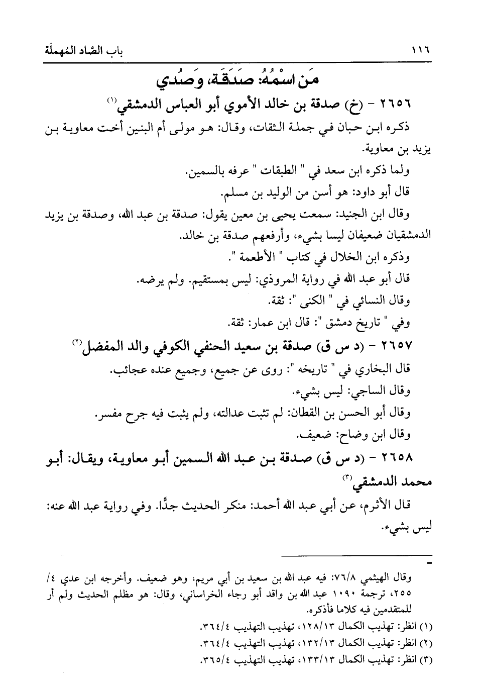 ٢٦٥٨ - (د س ق) صدقة بن عبد اللَّه السمين أبو معاوية، ويقال: أبو محمد الدمشقي (¬٣)
