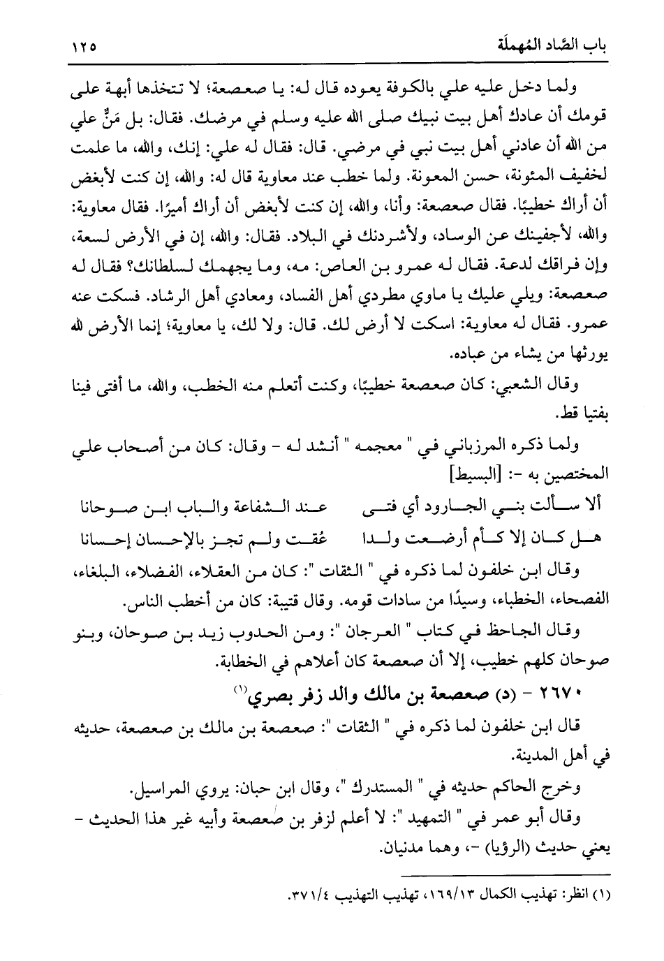 قال ابن خلفون لما ذكره في "الثقات": صعصعة بن مالك بن صعصعة، حديثه في أهل المدينة.