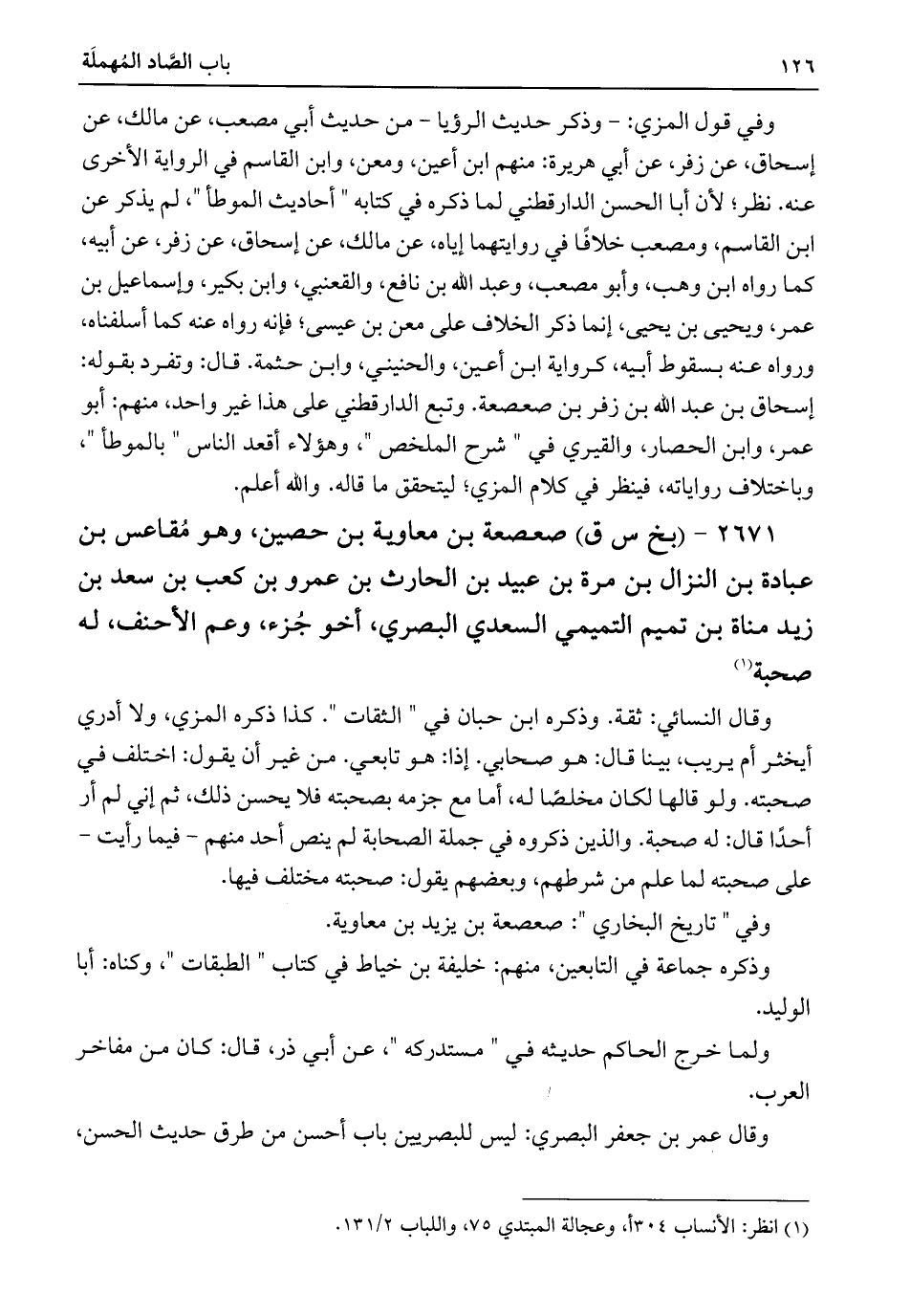 ٢٦٧١ - (بخ س ق) صعصعة بن معاوية بن حصين، وهو مُقاعس بن عبادة بن النزال بن مرة بن عبيد بن الحارث بن عمرو بن كعب بن سعد بن زيد مناة بن تميم التميمي السعدي البصري، أخو خزء، وعم الأحنف، له صحبة (¬١)