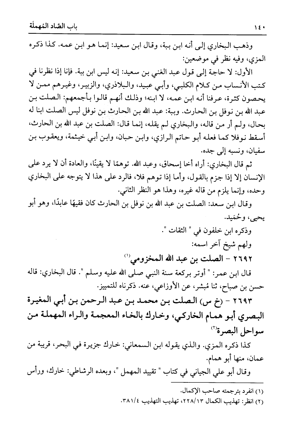 ٢٦٩٣ - (خ س) الصلت بن محمد بن عبد الرحمن بن أبي المغيرة البصري أبو همام الخارير، وخارك بالخاء المعجمة والراء المهملة من سواحل البصرة (¬٢)