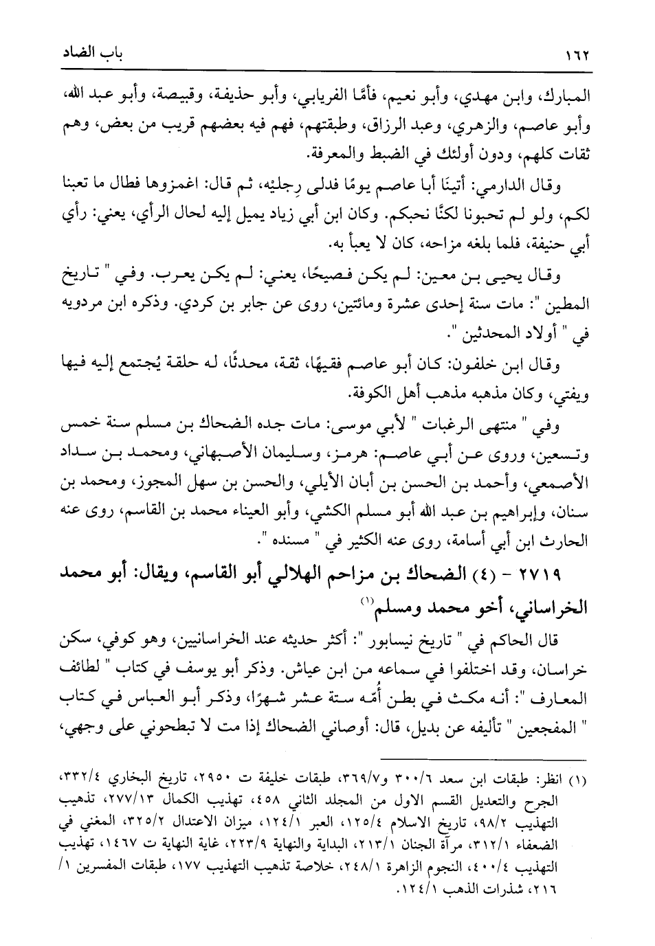 ٢٧١٩ - (٤) الضحاك بن مزاحم الهلالي أبو القاسم، ويقال: أبو محمد الخراساني، أخو محمد ومسلم (¬١)