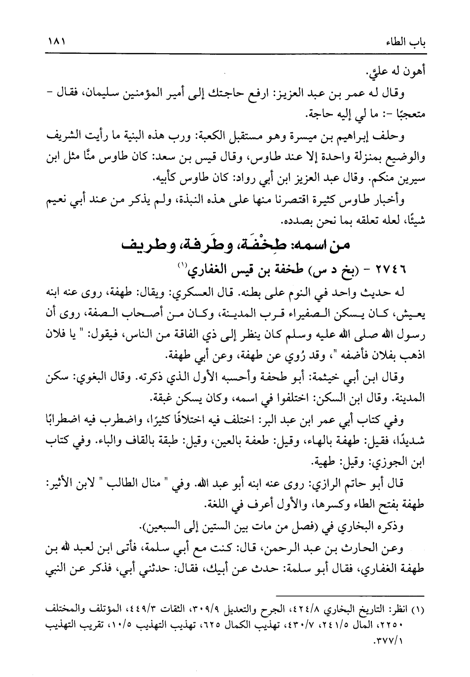 قال أبو حاتم الرازي: روى عنه ابنه أبو عبد اللَّه. وفي "منال الطالب" لابن الأثير: طهفة بفتح الطاء وكسرها، والأول أعرف في اللغة.