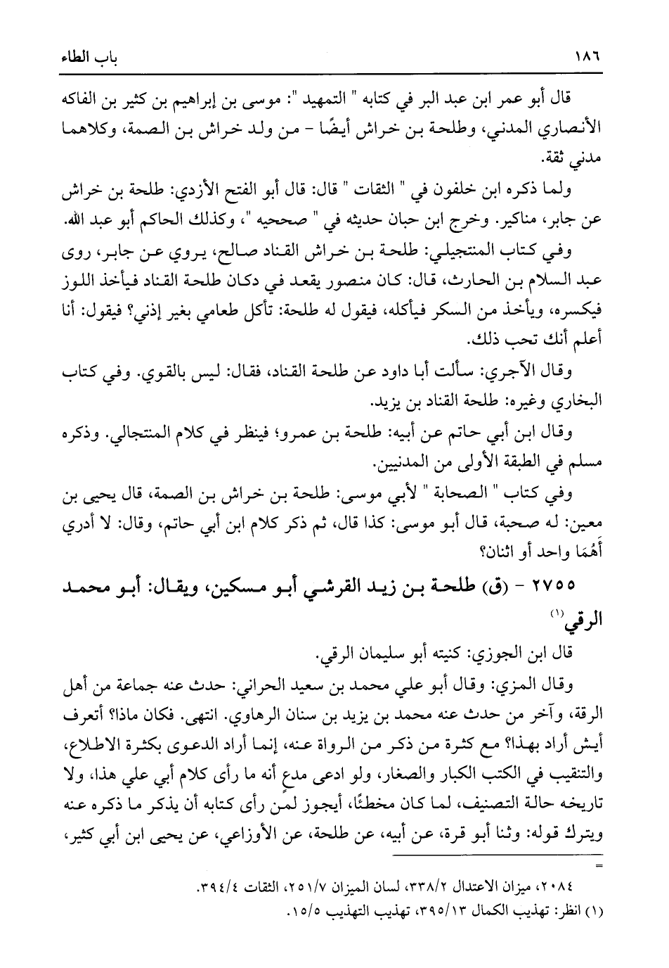 وقال المزي: وقال أبو علي محمد بن سعيد الحراني: حدث عنه جماعة من أهل الرقة، وآخر من حدث عنه محمد بن يزيد بن سنان الرهاوي. انتهى. فكان ماذا؟ أتعرف أيش أراد بهذا؟ مع كثرة من ذكر من الرواة عنه، إنما أراد الدعوى بكثرة الاطلاع، والتنقيب في الكتب الكبار والصغار، ولو ادعى مدعٍ أنه ما رأى كلام أبي علي هذا، ولا تاريخه حالة التصنيف، لما كان مخطئًا، أيجوز لمن رأى كتابه أن يذكر ما ذكره عنه ويترك قوله: وثنا أبو قرة، عن أبيه، عن طلحة، عن الأوزاعي، عن يحيى ابن أبي كثير،