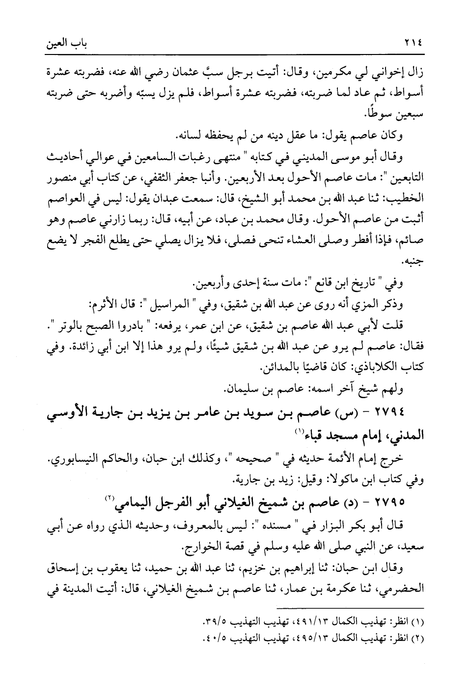 ولهم شيخ آخر اسمه: عاصم بن سليمان.