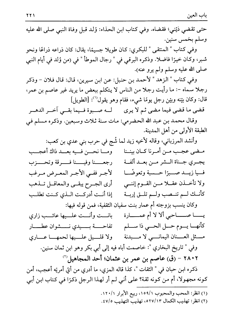 ٢٨٠٢ - (ق) عاصم بن عمر بن عثمان؛ أحد المجاهيل (¬٢)