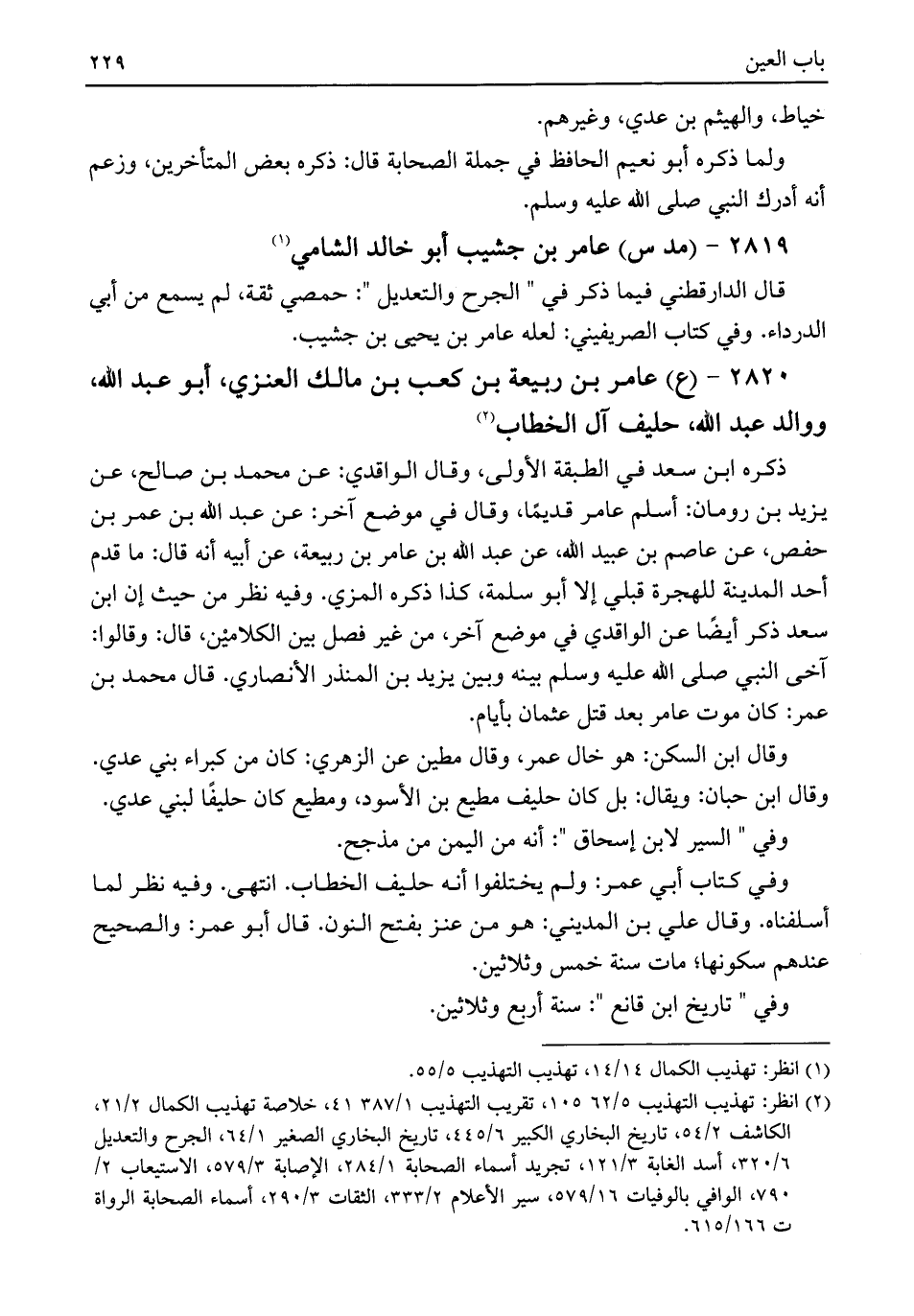 ٢٨٢٠ - (ع) عامر بن ربيعة بن كعب بن مالك العنزي، أبو عبد اللَّه، ووالد عبد اللَّه، حليف آل الخطاب (¬٢)