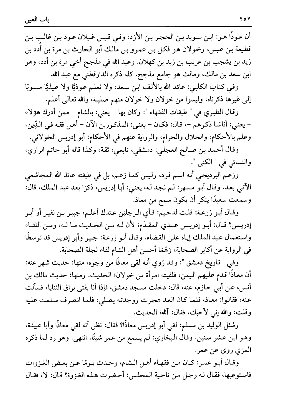 وقال الطبري في "طبقات الفقهاء": وكان بها -يعني: بالشام- ممن أدرك هؤلاء -يعني: أناسًا ذكرهم-، قال: فكان -يعني: المذكورين الآن- أهل فقه في الدِّين، وعلم بالأحكام، والحلال والحرام، والرواية عنهم في الأحكام: أبو إدريس الخولاني.