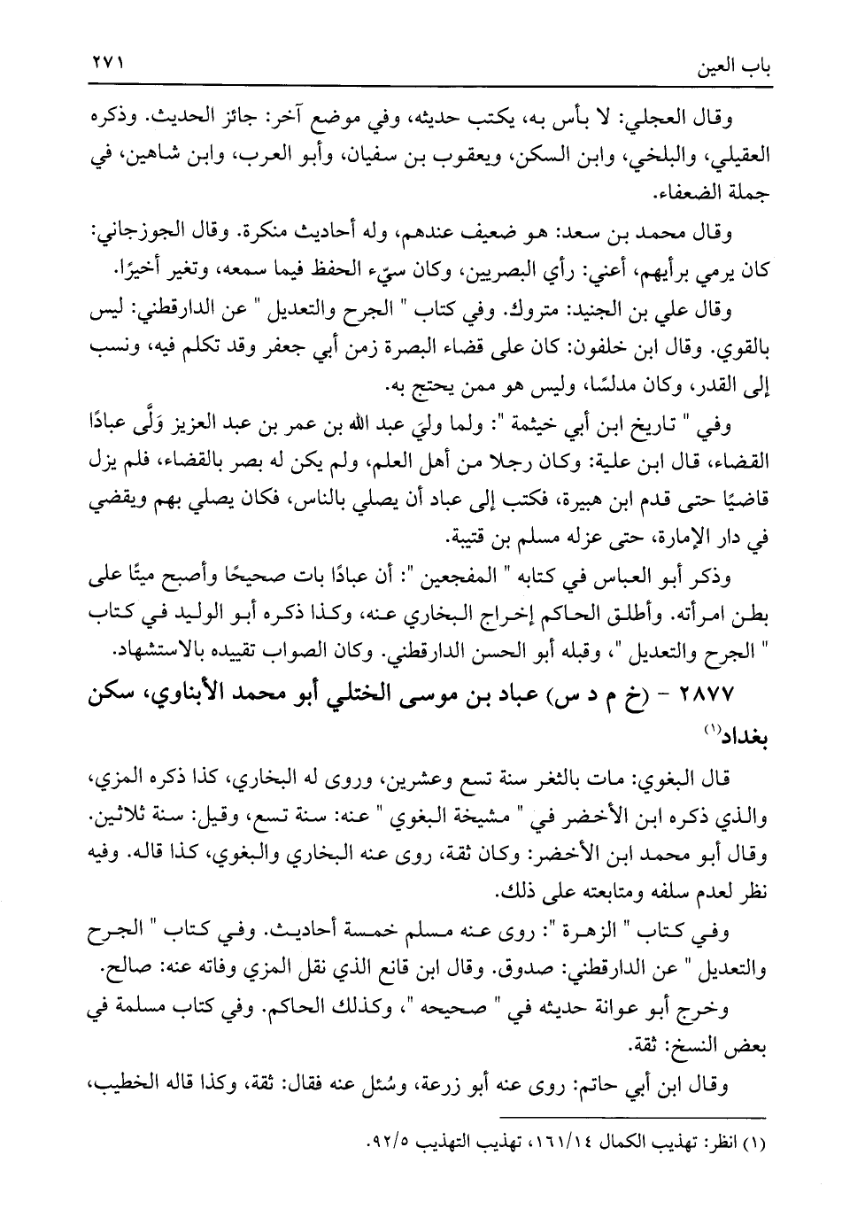 ٢٨٧٧ - (خ م د س) عباد بن موسى الختلي أبو محمد الأبناوي، سكن بغداد (¬١)