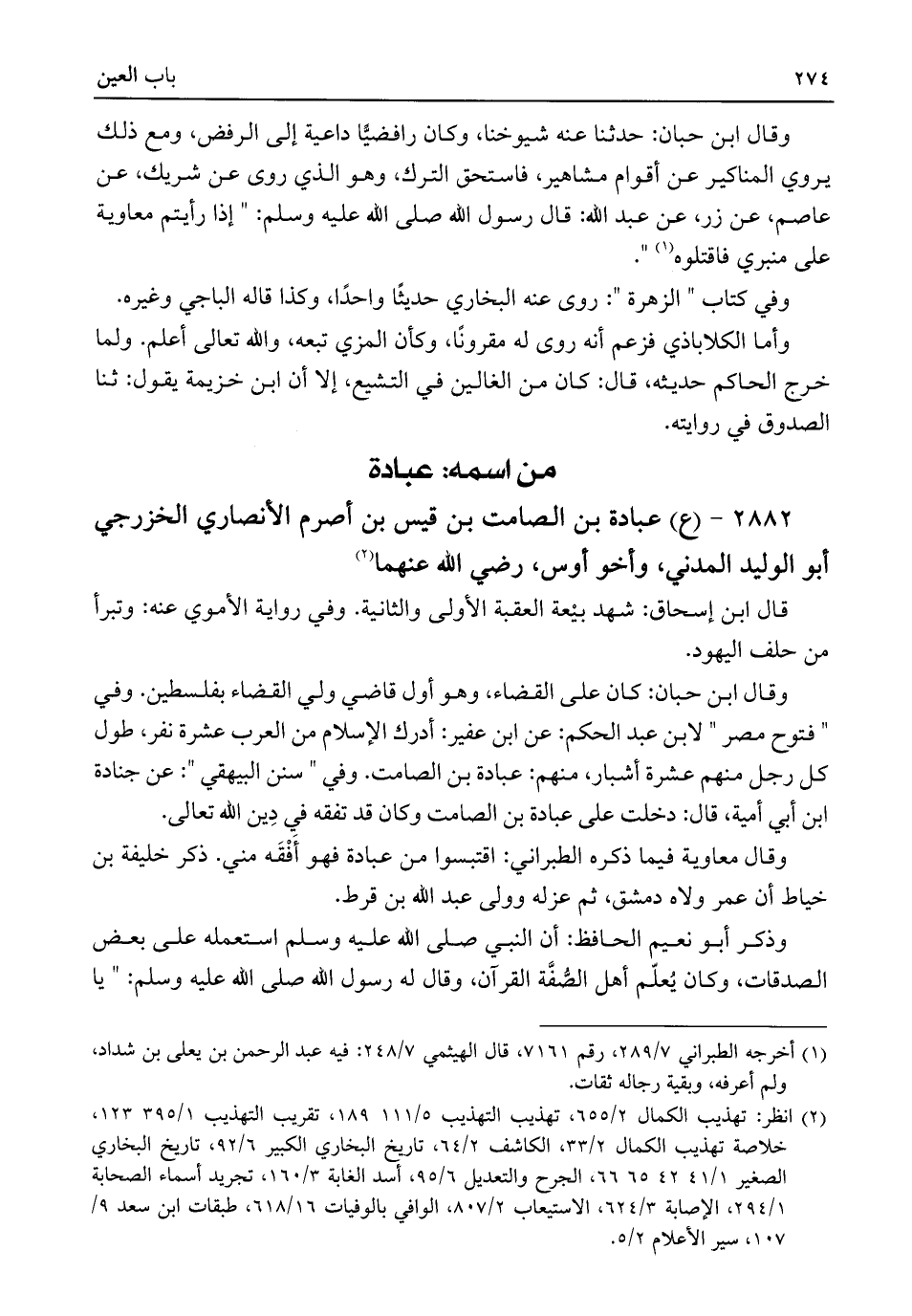 (¬٢) انظر: تهذيب الكمال ٢/ ٦٥٥، تهذيب التهذيب ٥/ ١١١، ١٨٩، تقريب التهذيب ١/ ٣٩٥، ١٢٣، خلاصة تهذيب الكمال ٢/ ٣٣، الكاشف ٢/ ٦٤، تاريخ البخاري الكبير ٦/ ٩٢، تاريخ البخاري الصغير ١/ ٤١، ٤٢، ٦٥، ٦٦، الجرح والتعديل ٦/ ٩٥، أسد الغابة ٣/ ١٦٠، تجريد أسماء الصحابة ١/ ٢٩٤، الإصابة ٣/ ٦٢٤، الاستيعاب ٢/ ٨٠٧، الوافي بالوفيات ١٦/ ٦١٨، طبقات ابن سعد ٩/ ١٠٧، سير الأعلام ٢/ ٥.