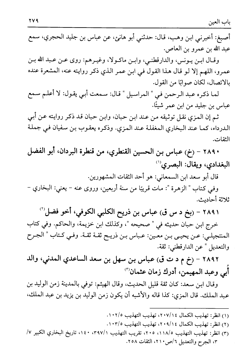 ٢٨٩٢ - (خ م د ت ق) عباس بن سهل بن سعد الساعدي المدني، والد أُبي وعبد المهيمن، أدرك زمان عثمان (¬٣)