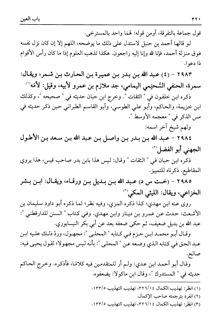 (¬٣) انظر: تهذيب الكمال ١٤/ ٣٢٦، تهذيب التهذيب ٥/ ١٣٣.
