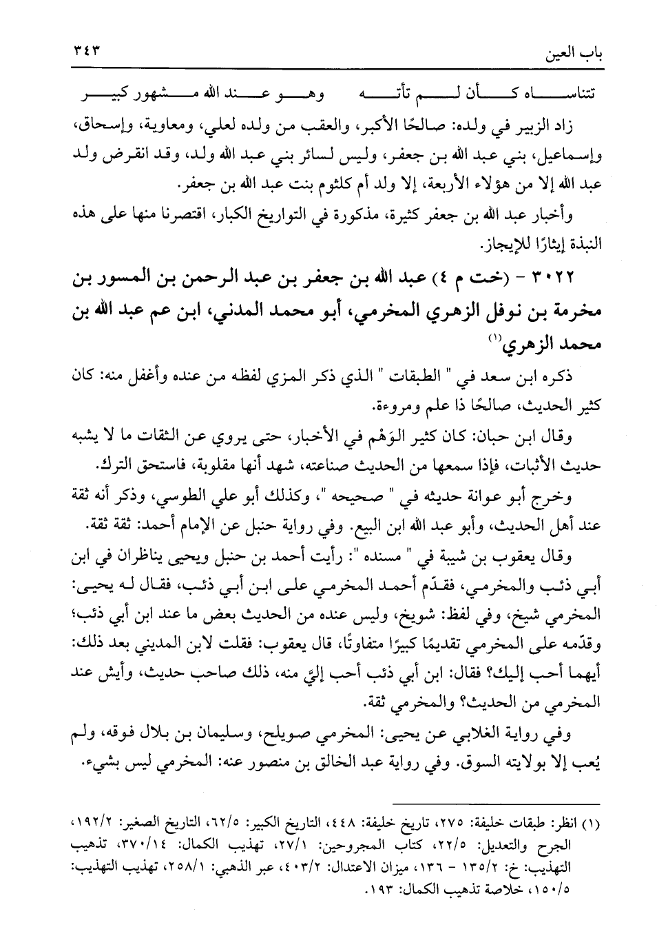 ٣٠٢٢ - (خت م ٤) عبد اللَّه بن جعفر بن عبد الرحمن بن المسور بن مخرمة بن نوفل الزهري المخرمي، أبو محمد المدني، ابن عم عبد اللَّه بن محمد الزهري (¬١)