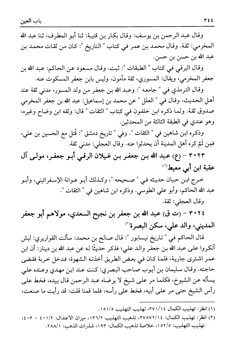 ٣٠٢٣ - (ع) عبد اللَّه بن جعفر بن غيلان الرقي أبو جعفر، مولى آل عقبة ابن أبي معيط (¬١)