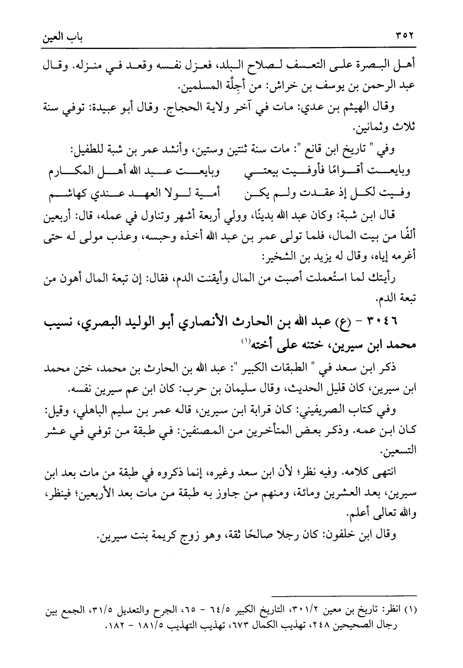 ٣٠٤٦ - (ع) عبد اللَّه بن الحارث الأنصاري أبو الوليد البصري، نسيب محمد ابن سيرين، ختنه على أخته (¬١)