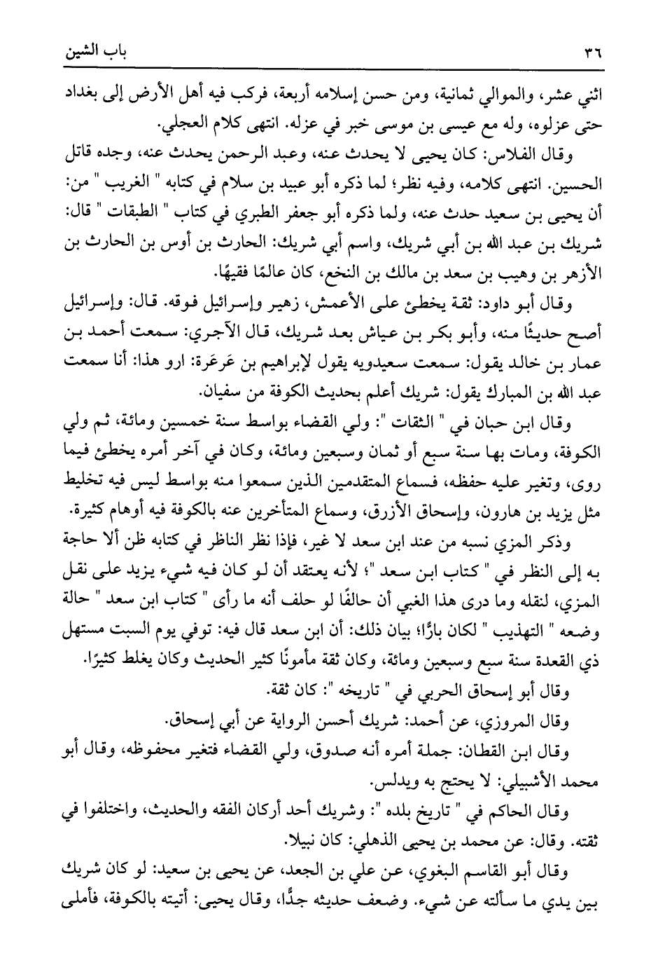 وقال الحاكم في "تاريخ بلده": وشريك أحد أركان الفقه والحديث، واختلفوا في ثقته. وقال: عن محمد بن يحيى الذهلي: كان نبيلا.