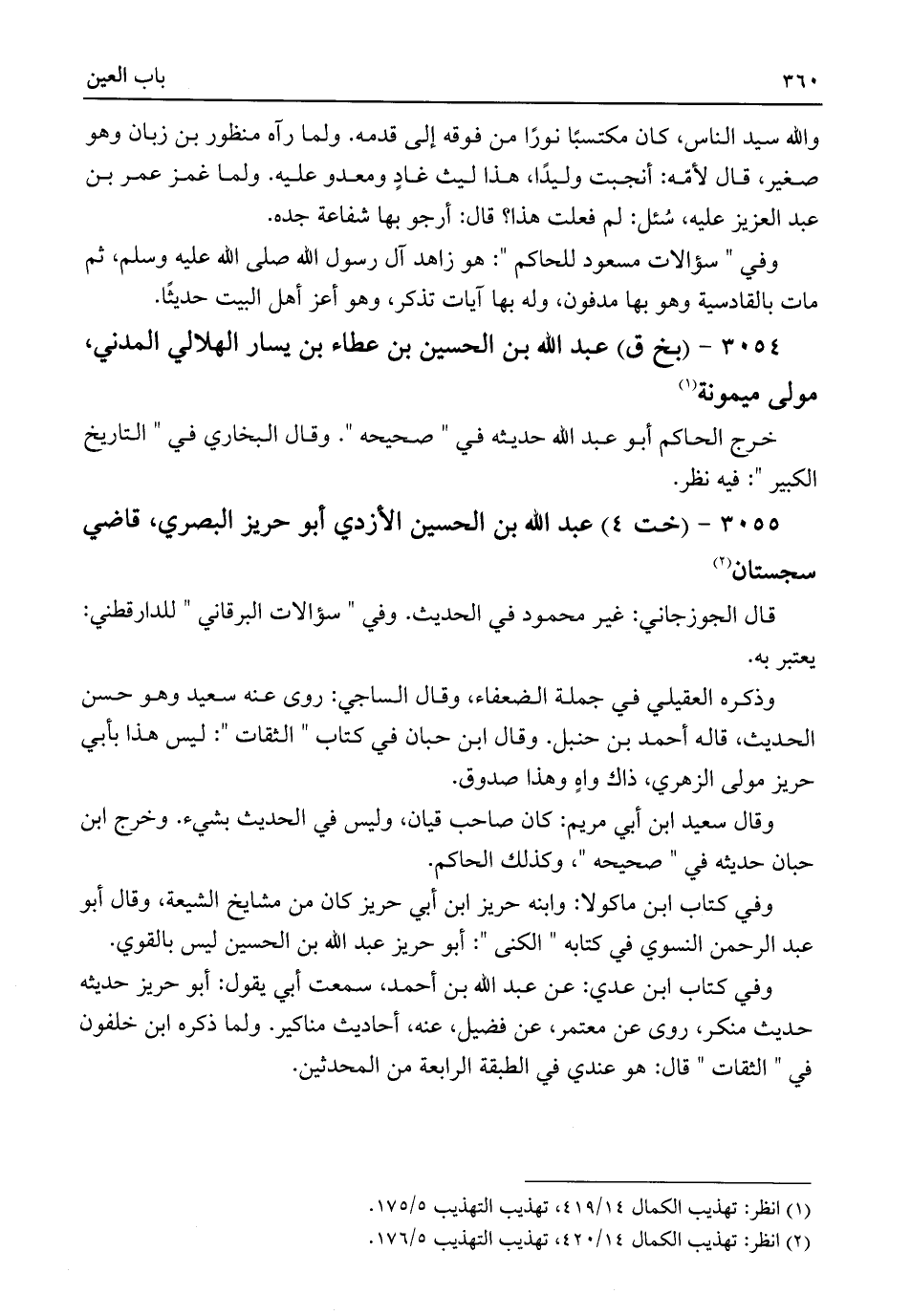 (¬٢) انظر: تهذيب الكمال ١٤/ ٤٢٠، تهذيب التهذيب ٥/ ١٧٦.