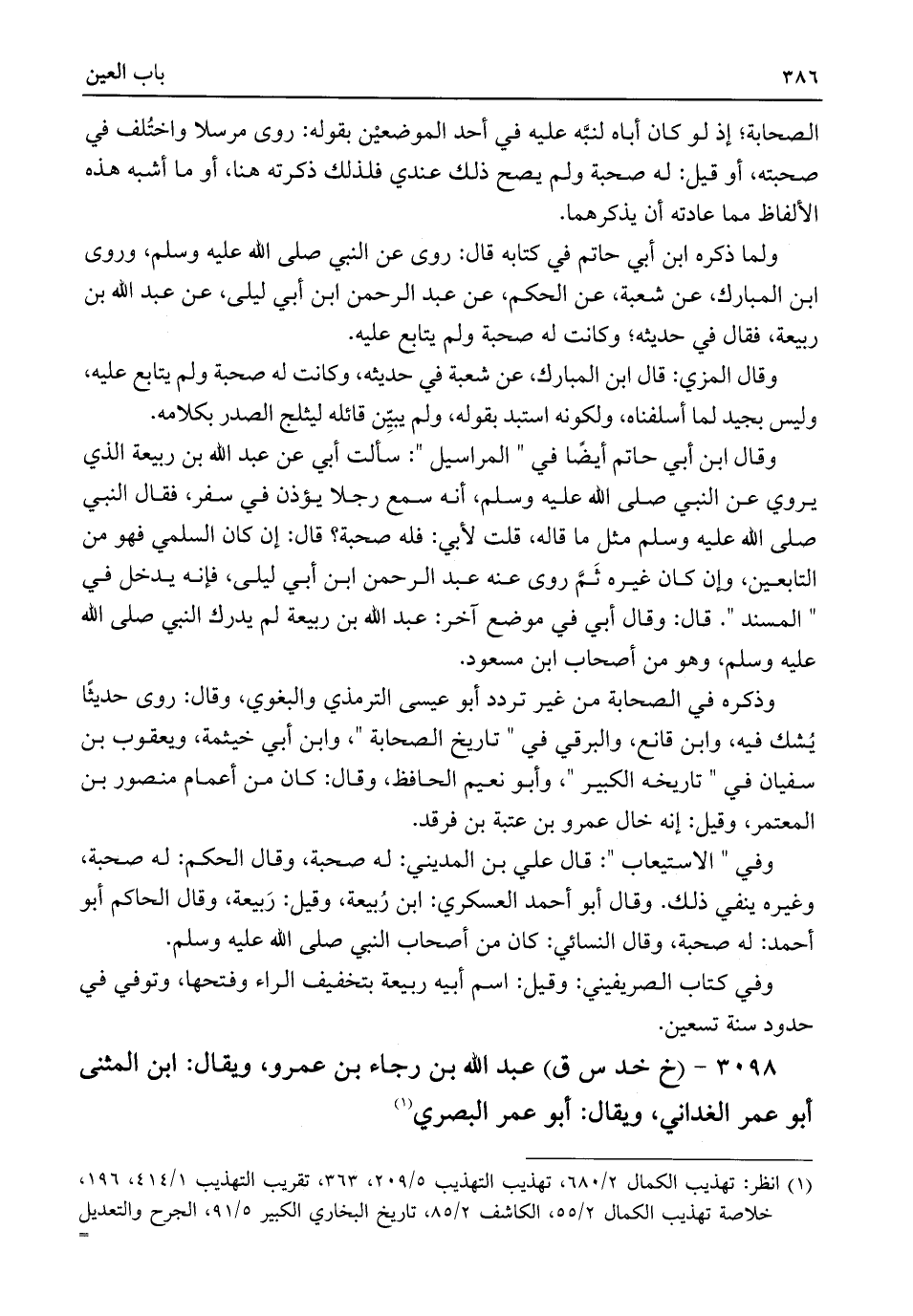 ٣٠٩٨ - (خ خد س ق) عبد اللَّه بن رجاء بن عمرو، ويقال: ابن المثنى أبو عمر الغداني، ويقال: أبو عمر البصري (¬١)