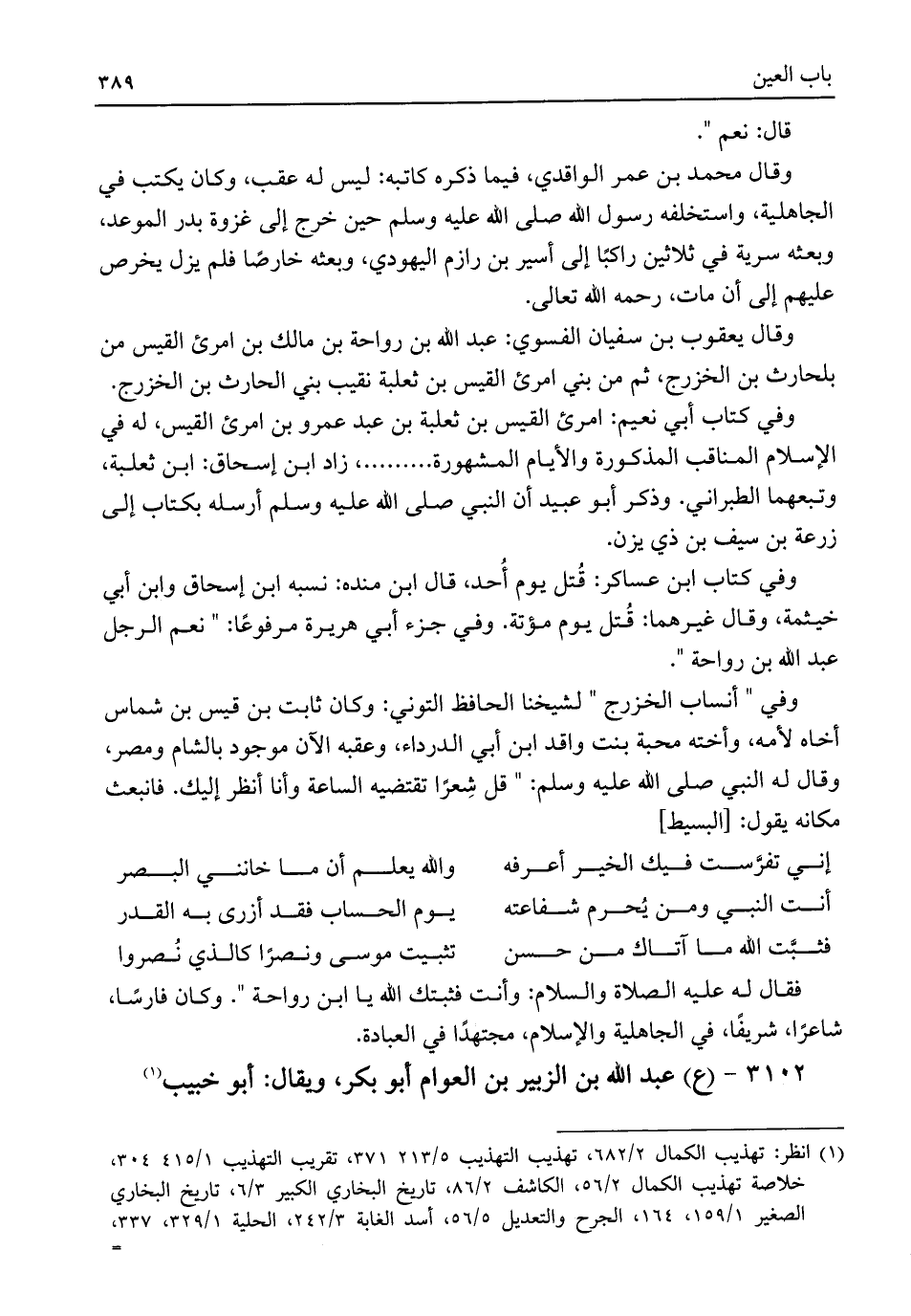 ٣١٠٢ - (ع) عبد اللَّه بن الزبير بن العوام أبو بكر، ويقال: أبو خبيب (¬١)