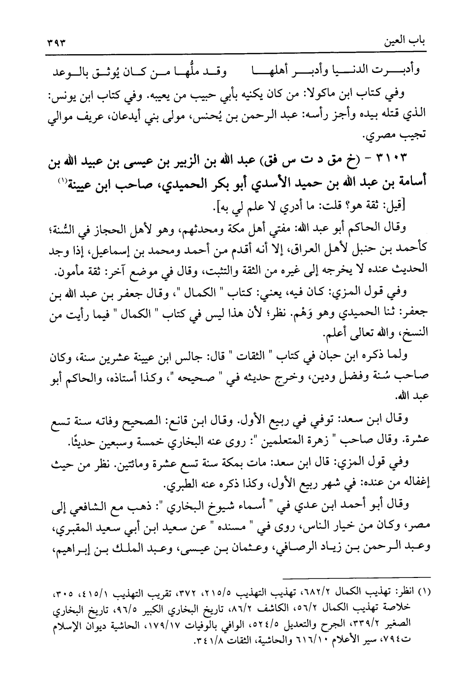 ٣١٠٣ - (خ مق د ت س فق) عبد اللَّه بن الزبير بن عيسى بن عبيد اللَّه بن أسامة بن عبد اللَّه بن حميد الأسدي أبو بكر الحميدي، صاحب ابن عيينة (¬١)