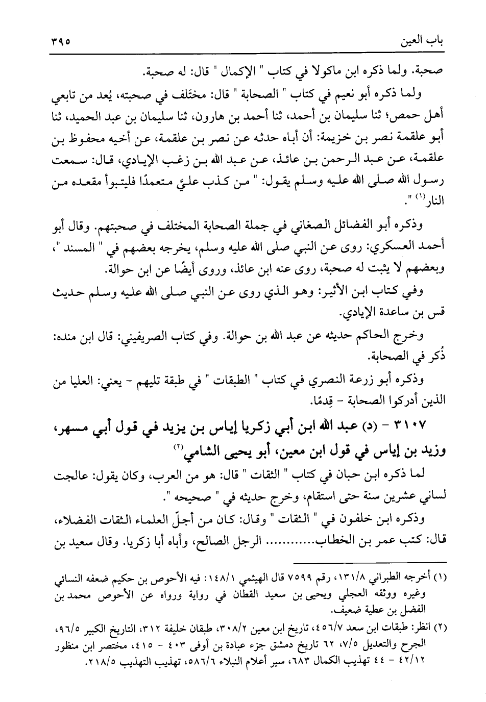 (¬٢) انظر: طبقات ابن سعد ٧/ ٤٥٦، تاريخ ابن معين ٢/ ٣٠٨، طبقات خليفة ٣١٢، التاريخ الكبير ٥/ ٩٦، الجرح والتعديل ٥/ ٧، ٦٢ تاريخ دمشق جزء عبادة بن أوفى ٤٠٣ - ٤١٥، مختصر ابن منظور ١٢/ ٤٢ - ٤٤ تهذيب الكمال ٦٨٣، سير أعلام النبلاء ٦/ ٥٨٦، تهذيب التهذيب ٥/ ٢١٨.