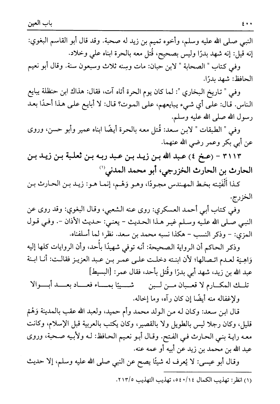 ٣١١٣ - (عخ ٤) عبد اللَّه بن زيد بن عبد ربه بن ثعلبة بن زيد بن الحارث بن الحارث الخزرجي، أبو محمد المدني (¬١)