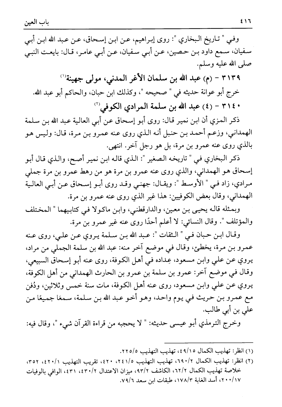 (¬٢) انظر: تهذيب الكمال ٢/ ٦٩٠، تهذيب التهذيب ٥/ ٢٤١، ٤٢٠، تقريب التهذيب ١/ ٤٢٠، ٣٥٢، خلاصة تهذيب الكمال ٢/ ٦٢، الكاشف ٢/ ٩٣، ميزان الاعتدال ٢/ ٤٣٠، ٤٣١، الوافي بالوفيات ١٧/ ٢٠٠، أسد الغابة ٣/ ١٧٨، طبقات ابن سعد ٦/ ٧٩.