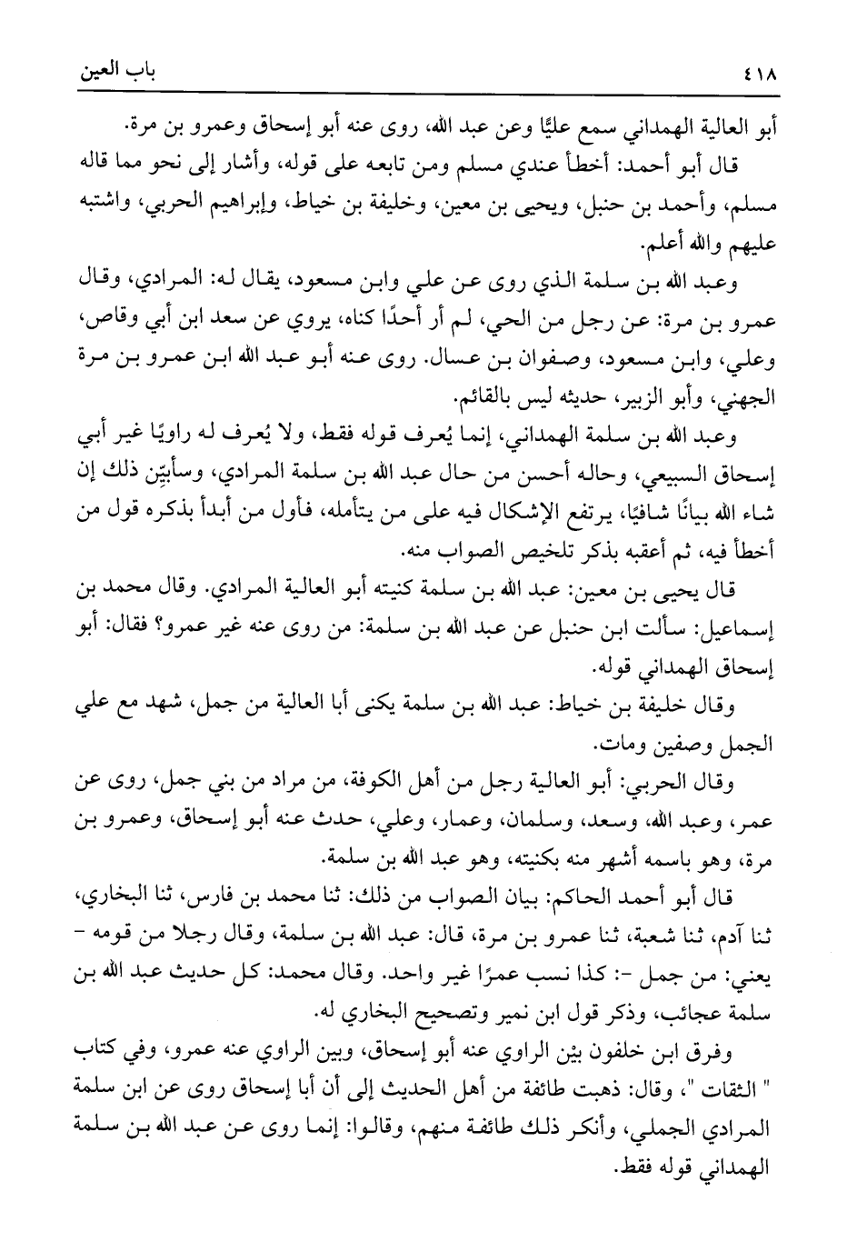 وعبد اللَّه بن سلمة الهمداني، إنما يُعرف قوله فقط، ولا يُعرف له راويًا غير أبي إسحاق السبيعي، وحاله أحسن من حال عبد اللَّه بن سلمة المرادي، وسأبيِّن ذلك إن شاء اللَّه بيانًا شافيًا، يرتفع الإشكال فيه على من يتأمله، فأول من أبدأ بذكره قول من أخطأ فيه، ثم أعقبه بذكر تلخيص الصواب منه.