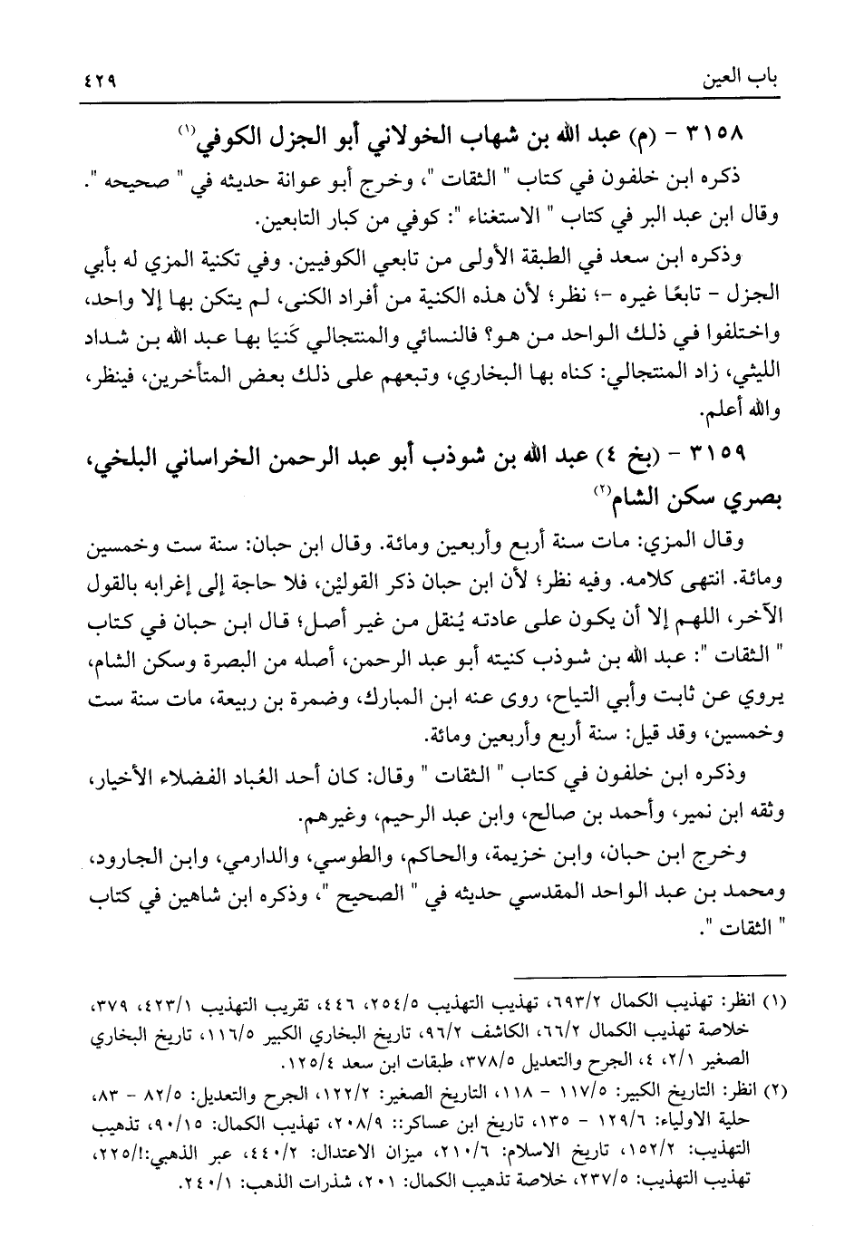 (¬١) انظر: تهذيب الكمال ٢/ ٦٩٣، تهذيب التهذيب ٥/ ٢٥٤، ٤٤٦، تقريب التهذيب ١/ ٤٢٣، ٣٧٩، خلاصة تهذيب الكمال ٢/ ٦٦، الكاشف ٢/ ٩٦، تاريخ البخاري الكبير ٥/ ١١٦، تاريخ البخاري الصغير ١/ ٢، ٤، الجرح والتعديل ٥/ ٣٧٨، طبقات ابن سعد ٤/ ١٢٥.