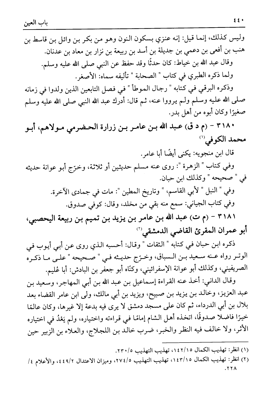 ٣١٨١ - (م ت) عبد اللَّه بن عامر بن يزيد بن تميم بن ربيعة اليحصبي، أبو عمران المقرئ القاضي الدمشقي (¬٢)