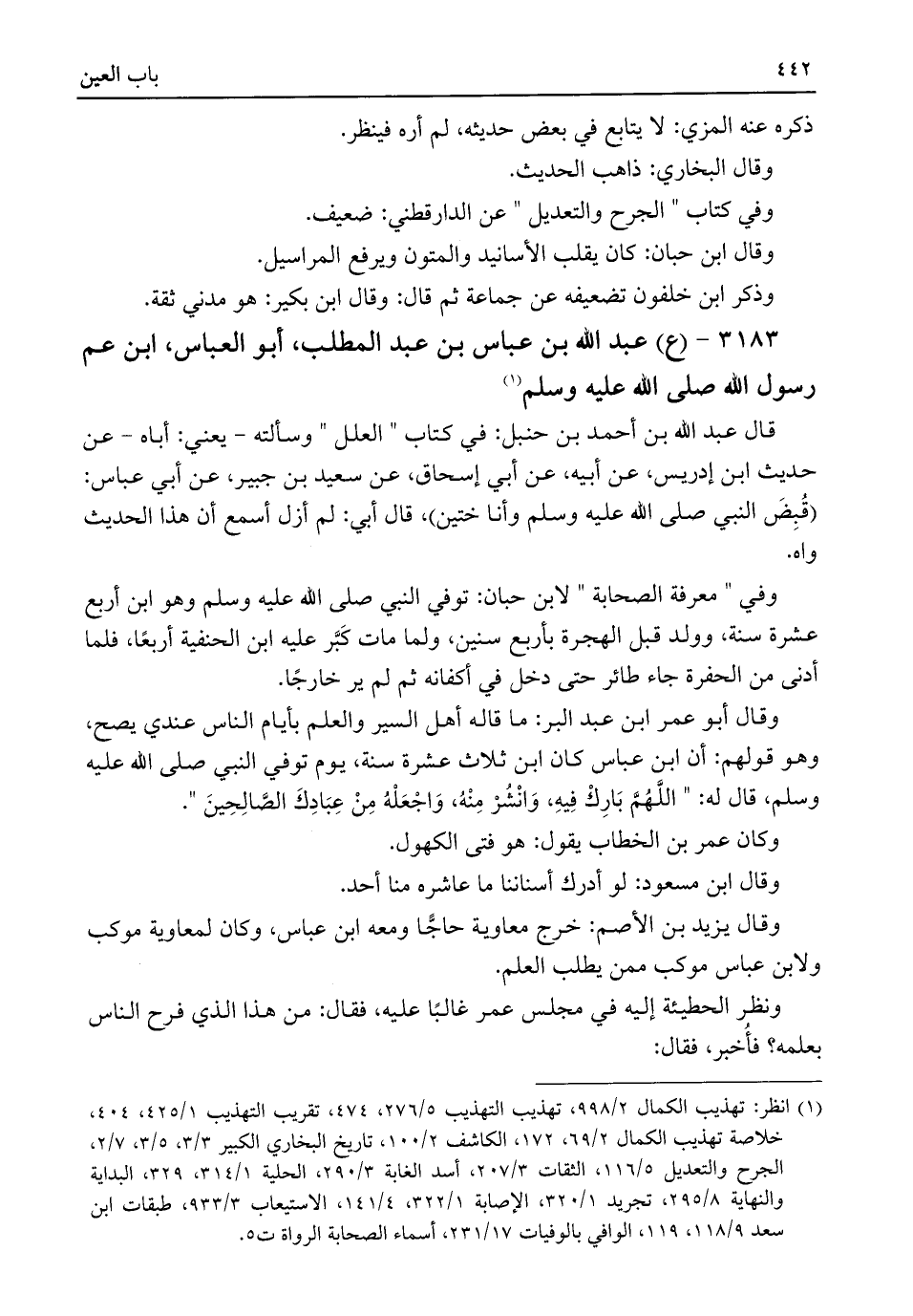 ٣١٨٣ - (ع) عبد اللَّه بن عباس بن عبد المطلب، أبو العباس، ابن عم رسول اللَّه صلى اللَّه عليه وسلم (¬١)