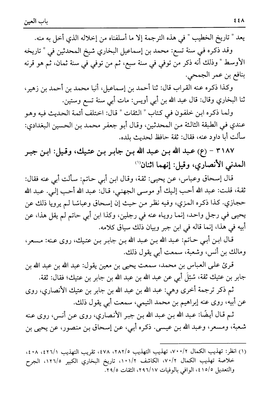 (¬١) انظر: تهذيب الكمال ٢/ ٧٠٠، تهذيب التهذيب ٥/ ٢٨٢، ٤٧٨، تقريب التهذيب ١/ ٤٢٦، ٤٠٨، خلاصة تهذيب الكمال ٢/ ٧٠، الكاشف ٢/ ١٠١، تاريخ البخاري الكبير ٥/ ١٢٦، الجرح والتعديل ٥/ ٤١٥، الوافي بالوفيات ١٧/ ٢٩٦، الثقات ٥/ ٢٩.