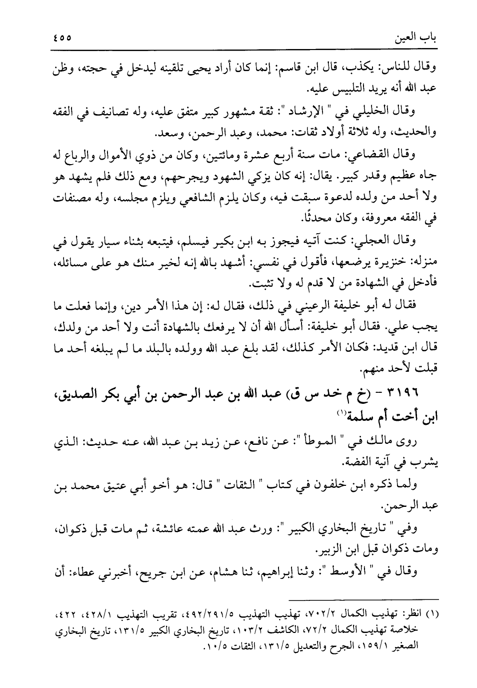 ٣١٩٦ - (خ م خد س ق) عبد اللَّه بن عبد الرحمن بن أبي بكر الصديق، ابن أخت أم سلمة (¬١)